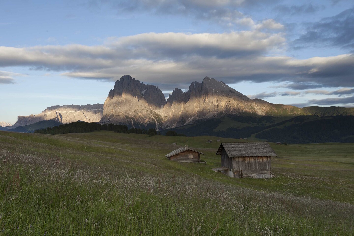 The mighty rockwalls of the Dolomites UNESCO World Heritage show themselves to the village of Lungiarü in a particularly dramatic beauty.