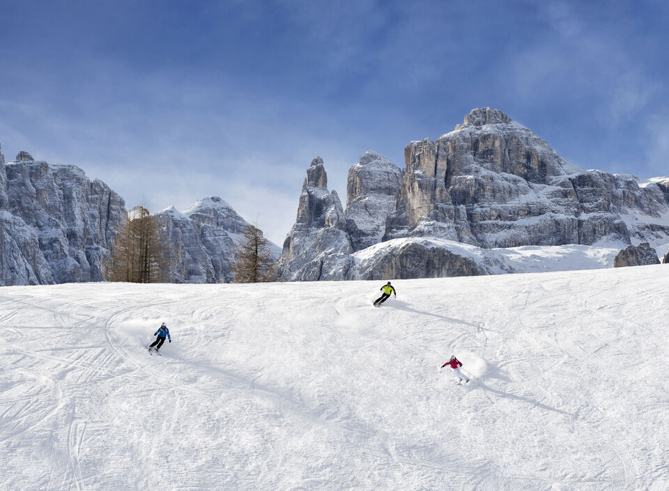 The Val Badia ski area is home to perhaps the most famous ski tour in the Alps: the Gebirgsjägertour. On this tour, you cover about 80 kilometers around the Col di Lana, the symbolic mountain of World War I, using lifts and skiing. In the mountain's rocks, you can find trenches, fortifications, and forts that were built a century ago during the mountain warfare between Austria-Hungary and Italy. Along the way, you'll encounter well-known Dolomite peaks such as the Sassongher, the Cinque Torri, and the Marmolada. This day-long tour takes approximately 7-8 hours and should ideally be started early in the morning. The early start is definitely worth it!