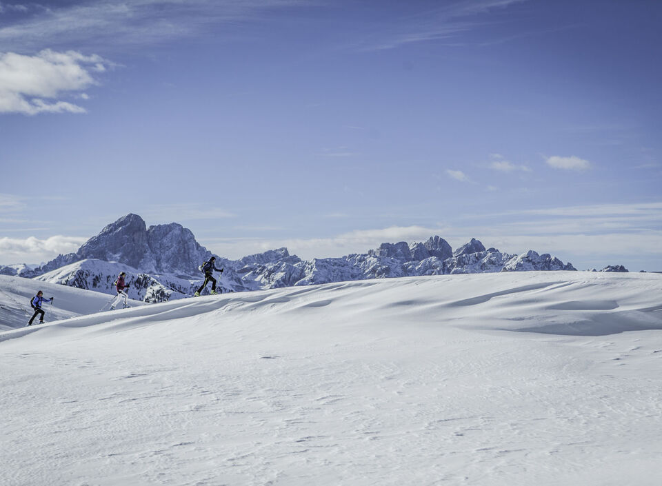 Un passo dopo l’altro, lento, ritmico e misurato. Tutt’intorno l’ammaliante silenzio della natura incontaminata del Parco naturale Puez Odle. Come per magia, stress e frenesie lasciano il nostro spirito per far posto ad un profondo stato di quiete. L'ascesa è una lunga meditazione che precede la discesa, dove l’impegno nella neve farinosa favorisce le scariche di adrenalina. ’ascesa